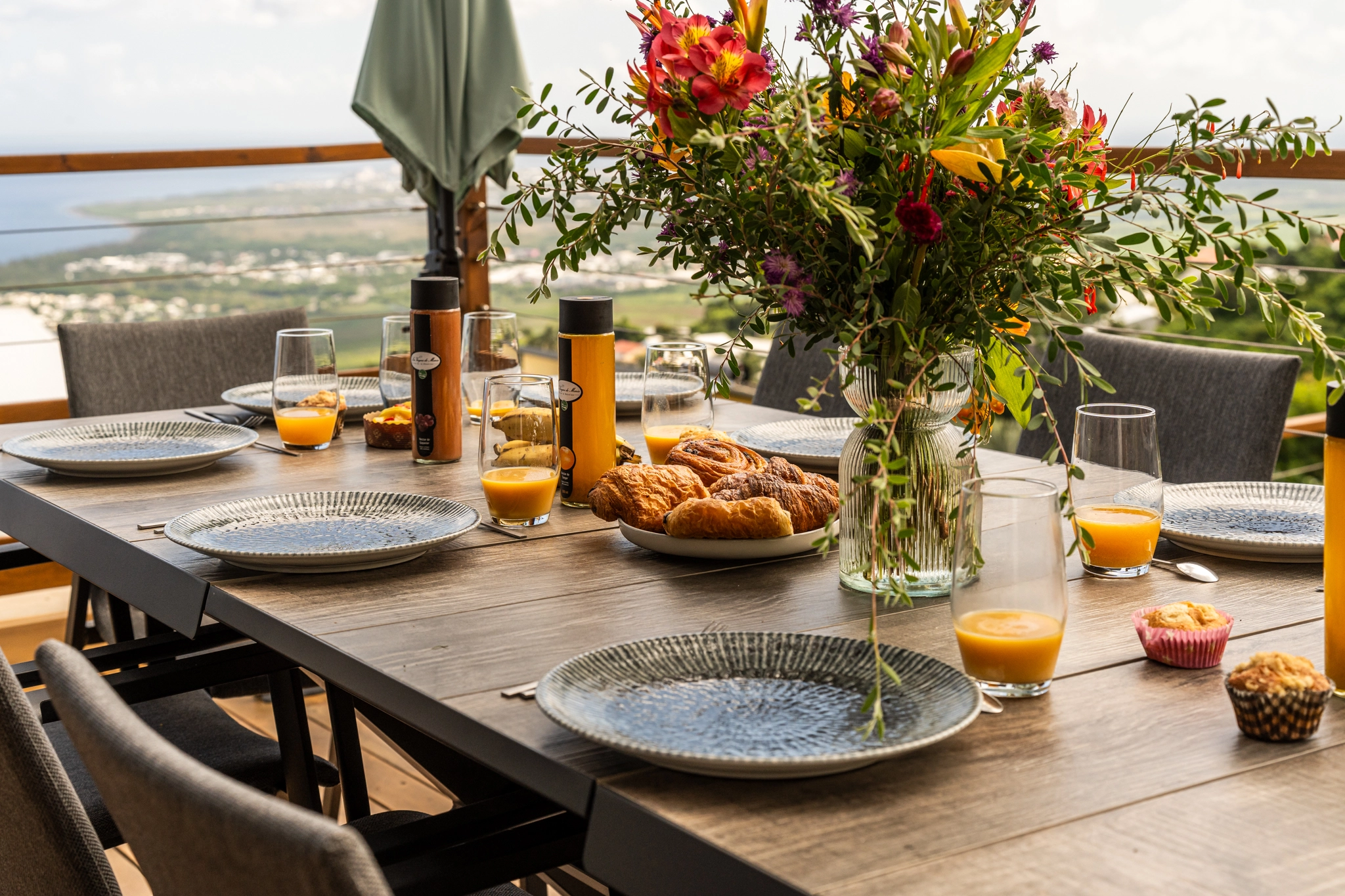 From the villa, the view stretches out over a magnificent landscape that changes throughout the day. With the sky, nature, and tropical light all coming together, every moment offers a unique spectacle and invites you to slow down and simply savor the moment.